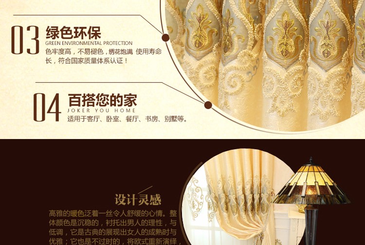 | 商品の名称 | 黛恩糸高級な欧風の豪華な刺繍のカーテンが完成しました。リビングルームの大部屋は遮光が豪華で、床につくカーテンをカスタマイズして、ベージュの布を一メートルずつ注文します。 |