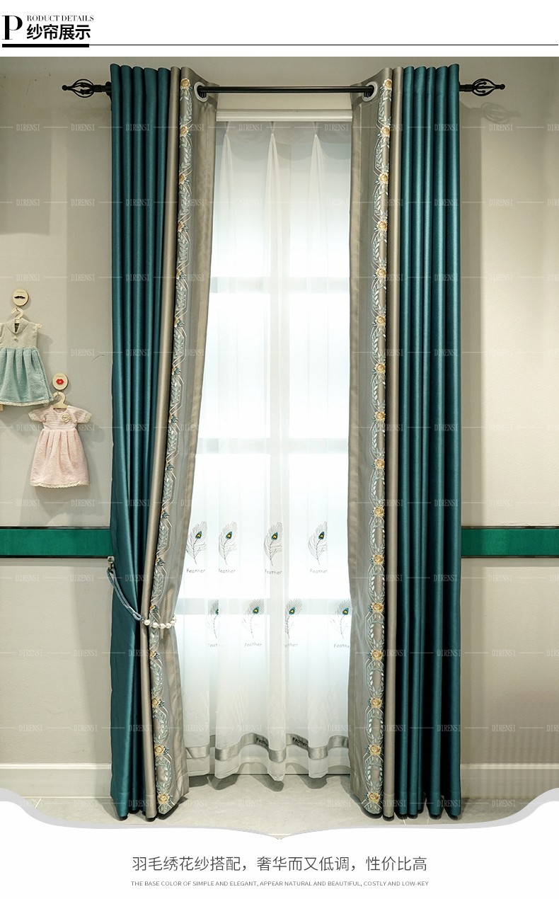 黛恩糸現代簡単カーテンの新しい中国式の軽い豪華な北欧シームレスに純色のカーテンをつなぎ合わせます。リビングルームの遮光布をオーダーメードします。浅い青緑色の布の幅は一メートルです。(固定幅は5.3メートル/6.3メートル/7.8メートルです。)