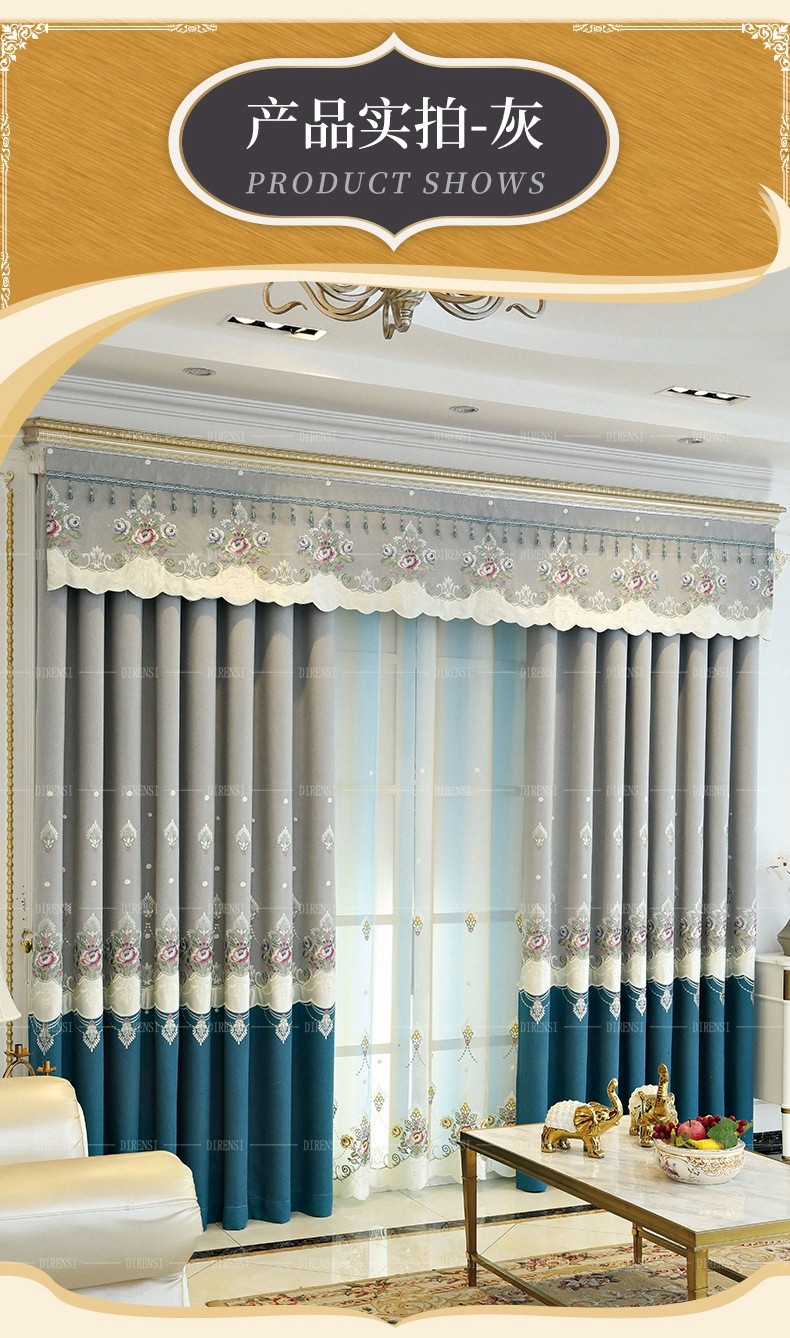 | 商品名称 | 黛恩糸のカーテンは簡単に現代ヨーロッパ式のリビングルームの遮光カーテンが完成品の着地した後、ブラインドの結婚室の軽い豪華な刺繍粉—蘭色の布幅一メートル(加工は無料で、カーテンと部品などは別途計算します) |
