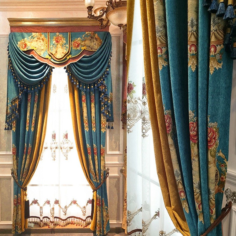 黛恩糸カーテンの完成品のリビングルームの洋式カーテンの豪華なシェニールの花の遮光布のカスタマイズ布の一メートルごとに(花の位0.375、カーテンの頭と部品などは別として)何メートルを要して何枚か撮りますか?