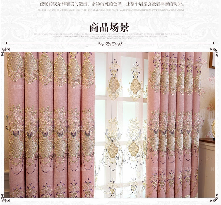 黛恩糸客間の寝室の結婚室の王女の部屋の刺繍のカーテンの布の遮光の翻る窓の陽の台の布の一メートルごとに(無料のカーテンの頭と部品などを加工して別に計算します)は何メートルを要して何件撮りますか?
