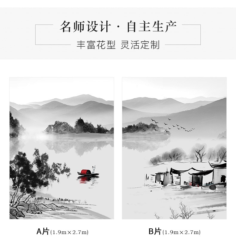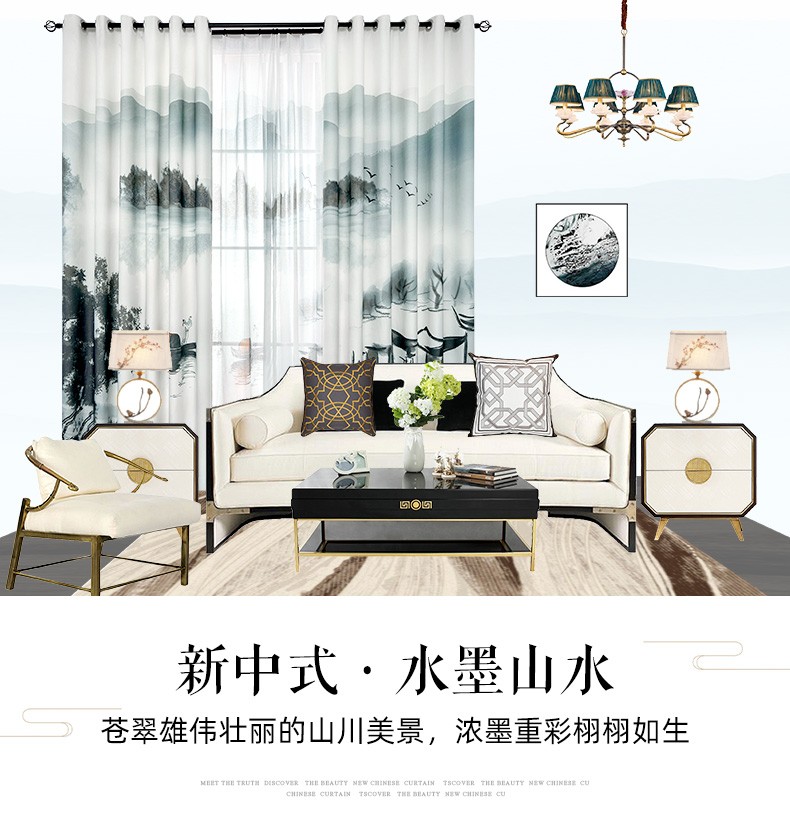 | 商品名称 | 黛菲娜新中国式カーテン布遮光水墨画リビングルーム遮光断熱プリントカーテン9955-半遮光布-打孔完成品幅2.4*2.7メートル*1枚(高可改) |