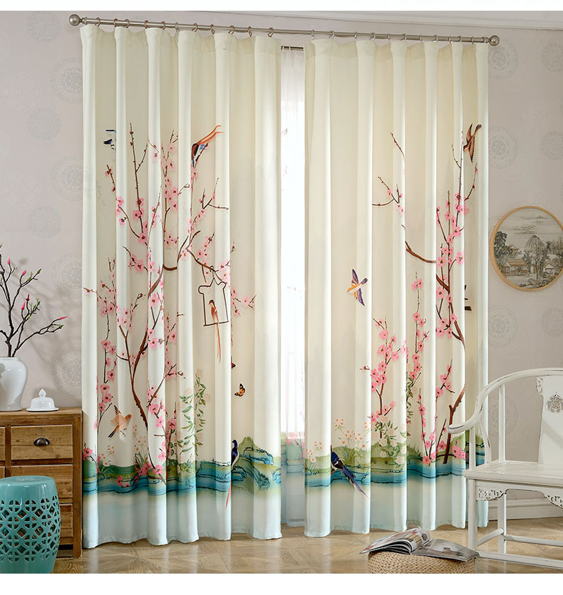 黛菲娜中国式カーテン布遮光完成品の田園客間の床に置くアジサイのカーテンカーテン7968-半遮光布-穴を開けて1メートルの料金を注文します。【オンラインカスタマーサービスに連絡します。】