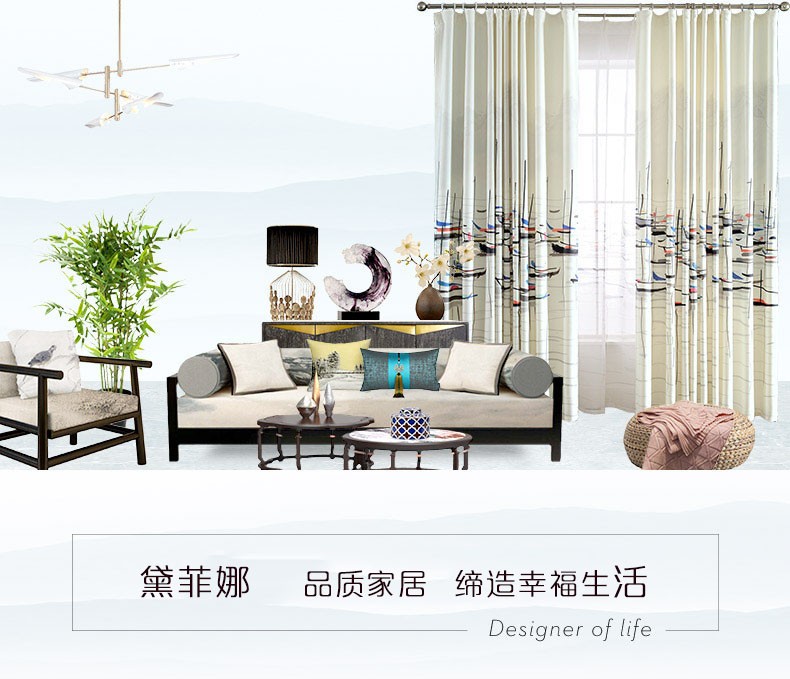 黛菲娜は現代の新中国式カーテン生地を簡単に予約して、リビングルームのベランダの書斎に置いてあるカーテン7333-半遮光布-打孔完成品の幅3.4*2.7メートルの高さ*1枚(高可改)