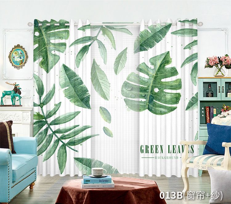 カザニ(ASHANI)半全遮光カーテンカーテンカーテンカーテンカーテンカーテンカーテン寝室客間接客北欧風アニメグリーン葉B 0065漫画グリーンリーフ-ホック幅1メートル/何メートルで何枚か撮ります。