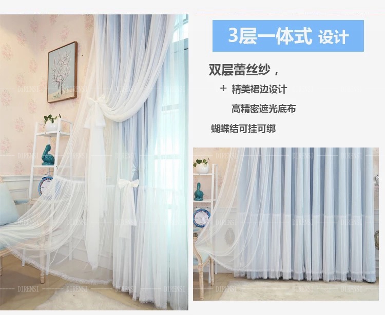 黛恩糸韓式レースのカーテンの完成品の王女風の遮光窓の紗の寝室は注文して現代簡単に窓の客間のピンクの布紗の一体を翻します(加工は無料です)は何メートルを要して何件撮りますか?