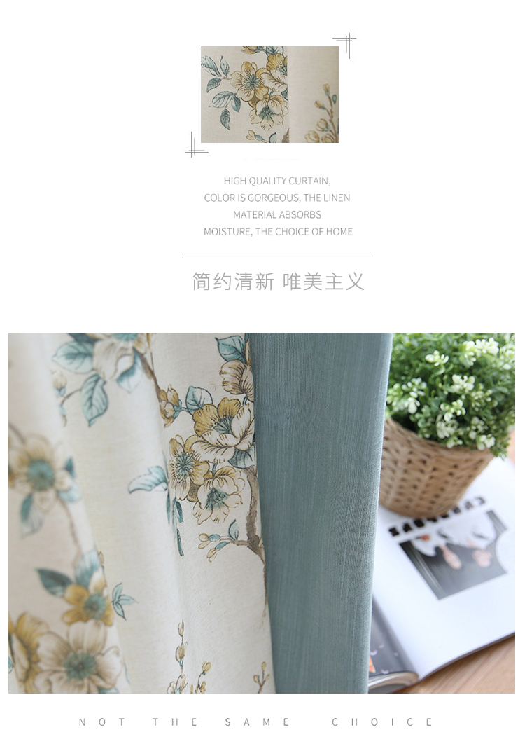 黛恩糸麻カーテンアメリカンカントリーシンプル現代リビングルームの遮光窓カーテンの既製オーダーメイド水色布一メートル(加工無料)