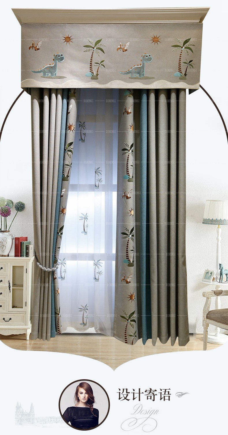 黛恩糸の綿麻のカーテンの完成品は簡単で現代の子供部屋のカーテンの男の子の漫画の恐竜の寝室の遮光布の単色の布の幅の1メートルの専売写真(刺繍の布は別に計算します)は何メートルを要して何件の撮影をしますか?