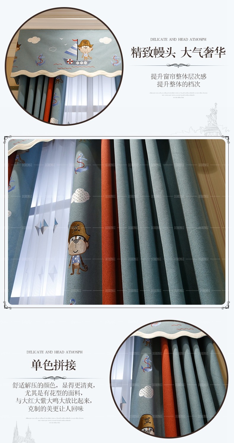黛恩糸のカーテンの漫画は現代イギリス風の海賊船の子供部屋のカーテンの男の子の寝室の窓の明かりのカーテンの布の広い1メートルの専売写真(刺繍の布は別に計算します)を予約して何メートルの撮影を要しますか?