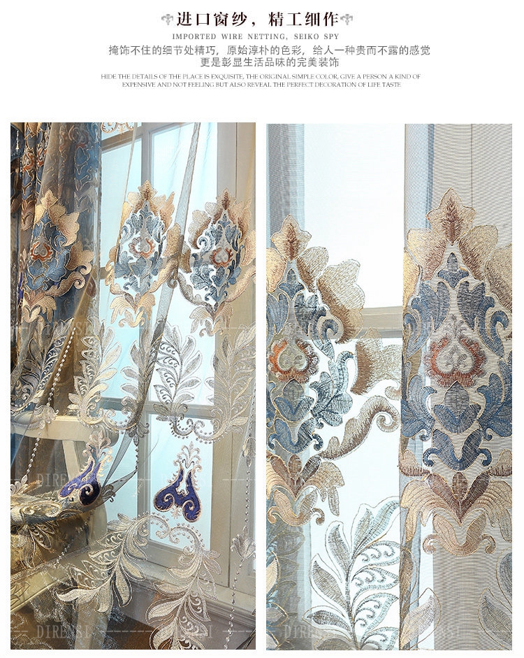 黛恩糸の高級な欧風の透かし彫りのシニールの客間の豪華なカーテンの大気の水は溶けて刺します刺繍の紗のカーテンの別荘の寝室のカスタマイズの布の一メートルごとに(加工を包んで、カーテンの頭は別に計算します)を刺して何メートル撮りますか?