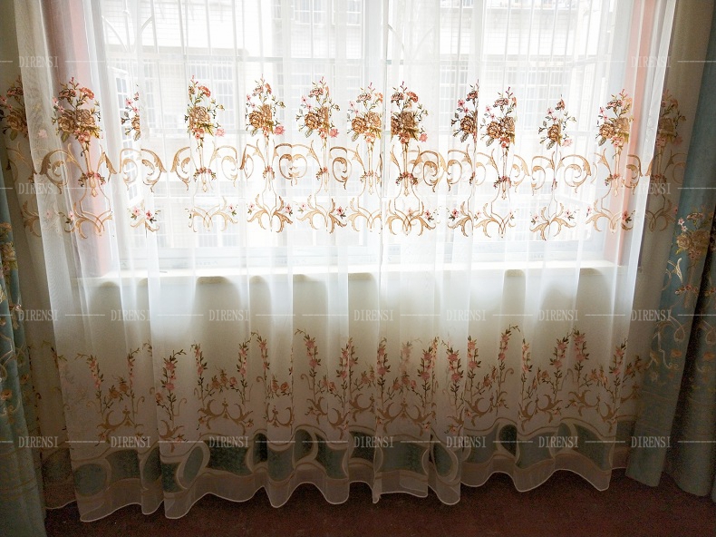 黛恩糸は高級なヨーロッパ式の田園の綿布のカーテンを注文して作らせます。刺繍用のリビングルームの遮光カーテンは一メートルごとに(無料のカーテンと部品などを加工して別に計算します。)何メートルで何枚か撮りますか?